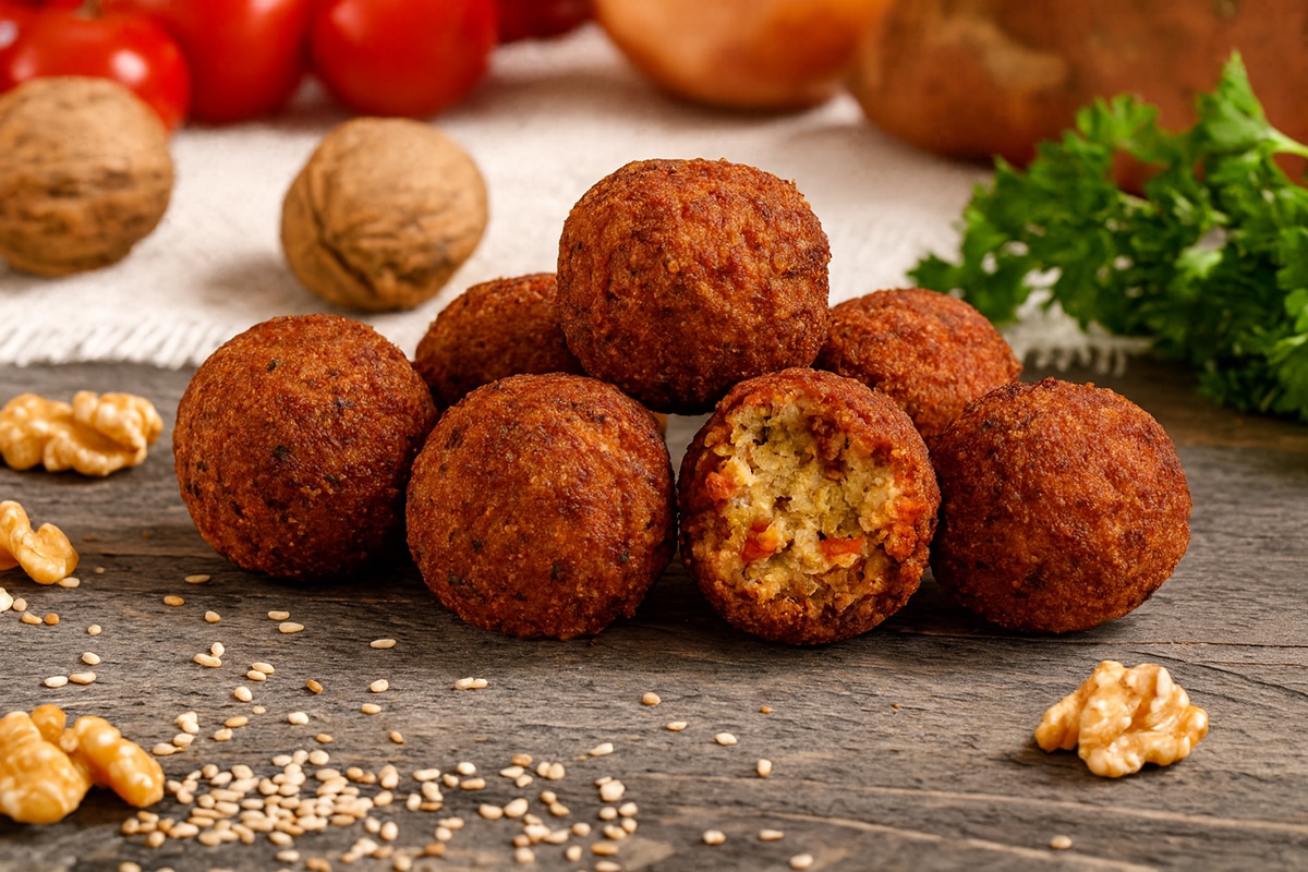 Süsskartoffel-Falafel mit Tahini und Walnüssen